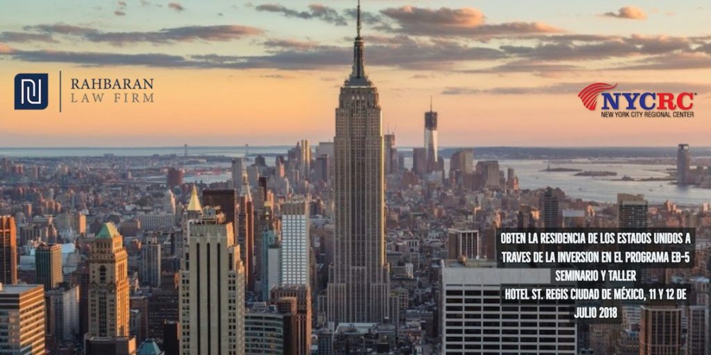 Rahbaran & Associates and the New York City Regional Center will host a two-day seminar and workshop at the St. Regis Hotel in Mexico City. These events will take place on July 11 and 12, 2018.